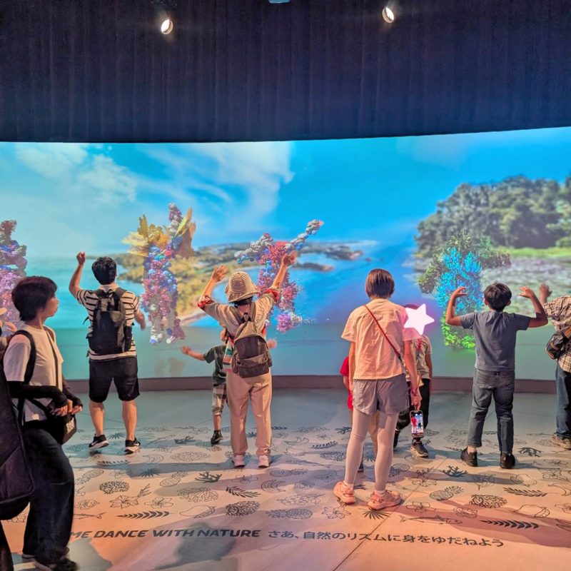 フィリピン館の魅力はAI技術を活用した体験スペースです。大きなスクリーンには、青い空と海、緑の山々などフィリピンの豊かな自然が映し出されます。