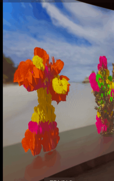 楽しいAIポートレートのスペースもあります。南国のフルーツや花、魚のフレームを選んで撮影すると、あっという間にステキな写真が出来上がりました。それも10歳以上は若く見える?
